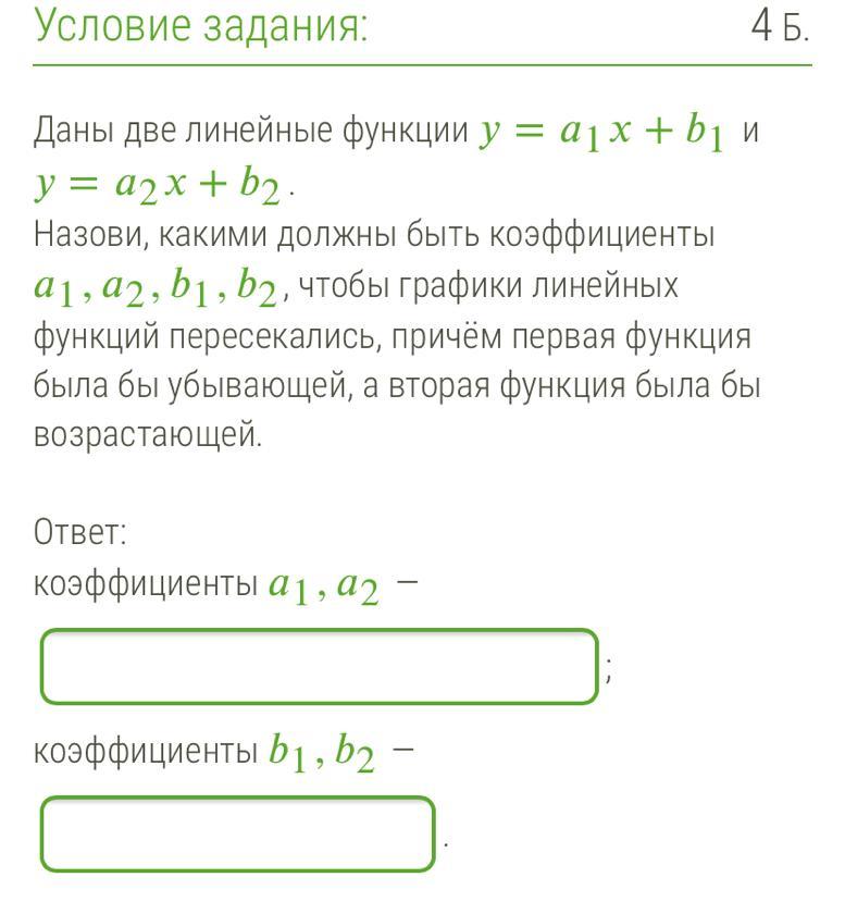 коэффициенты должны быть различными,знак зависит от монотонности, так первая убывает. ее знак отрицателен, вторая возрастает, поэтому знак положителен.