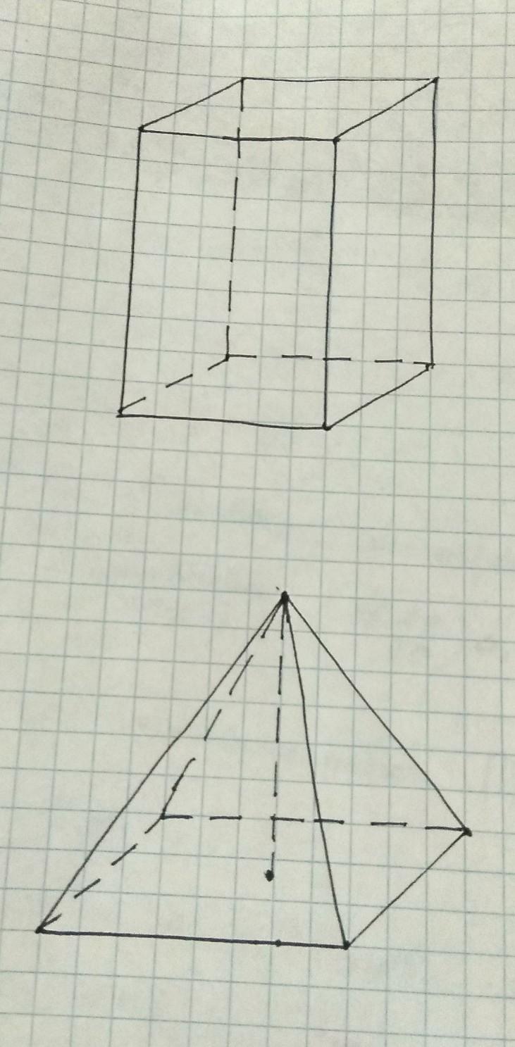 пожалуйста, кому не трудно, очень прошу, постройте на листе прямоугольную четырехугольную призму и четырехугольную пирамиду