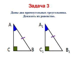 3) В третьей задаче треугольники равны по гипотенузе и острому углу ( третий признак равенства треугольников)