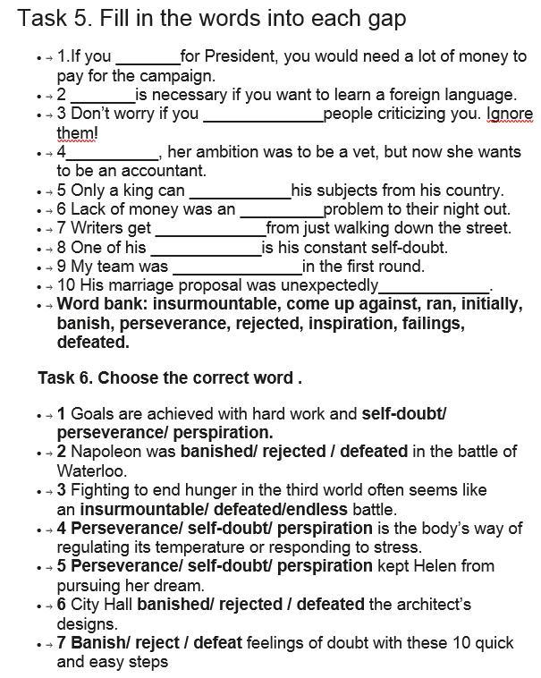 5) Self-doubt kept Helen from pursuing her dream. – Сомнение в себе не давало Хэлен следовать за своей мечтой.