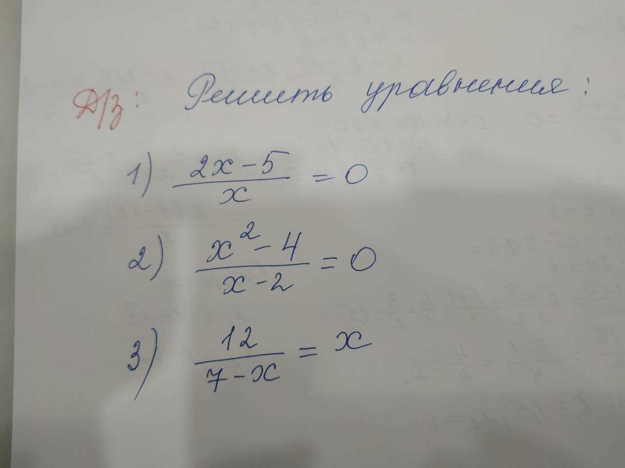 Поскольку на 0 делить нельзя, то х не равен нулю, дальше решаем пример. 2х-5=0 х= 5/2