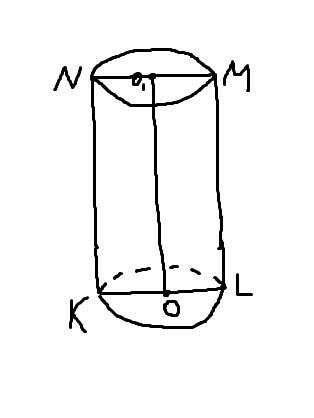 Осевое сечение цилиндра - это прямоугольник KLMN (диагональ KM). В прямоугольном треугольнике KLM по Теореме Пифагора: