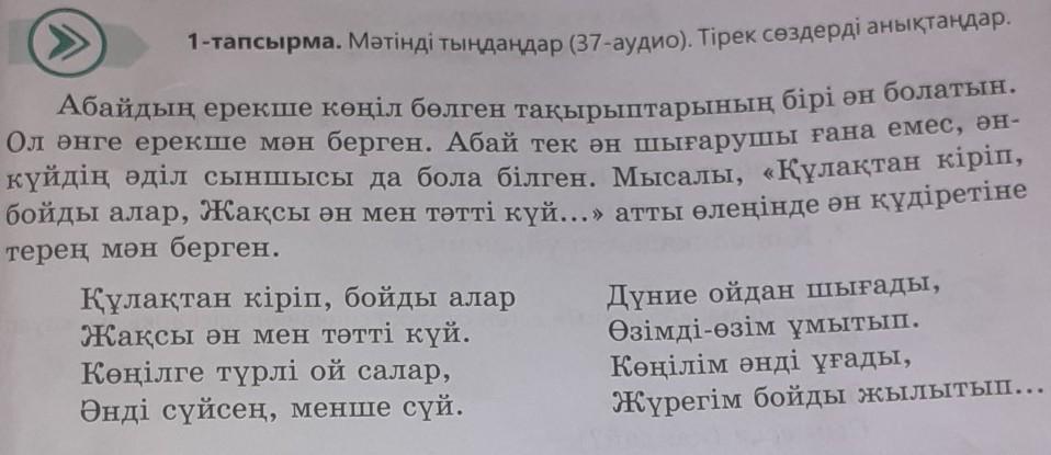 Абай, сыншы , жақсы ән,тәтті күй, көңілім, жүрек.