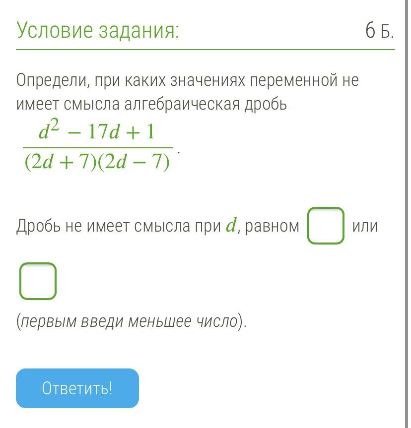 Дробь не имеет смысла при d равном -3,5 или 3,5