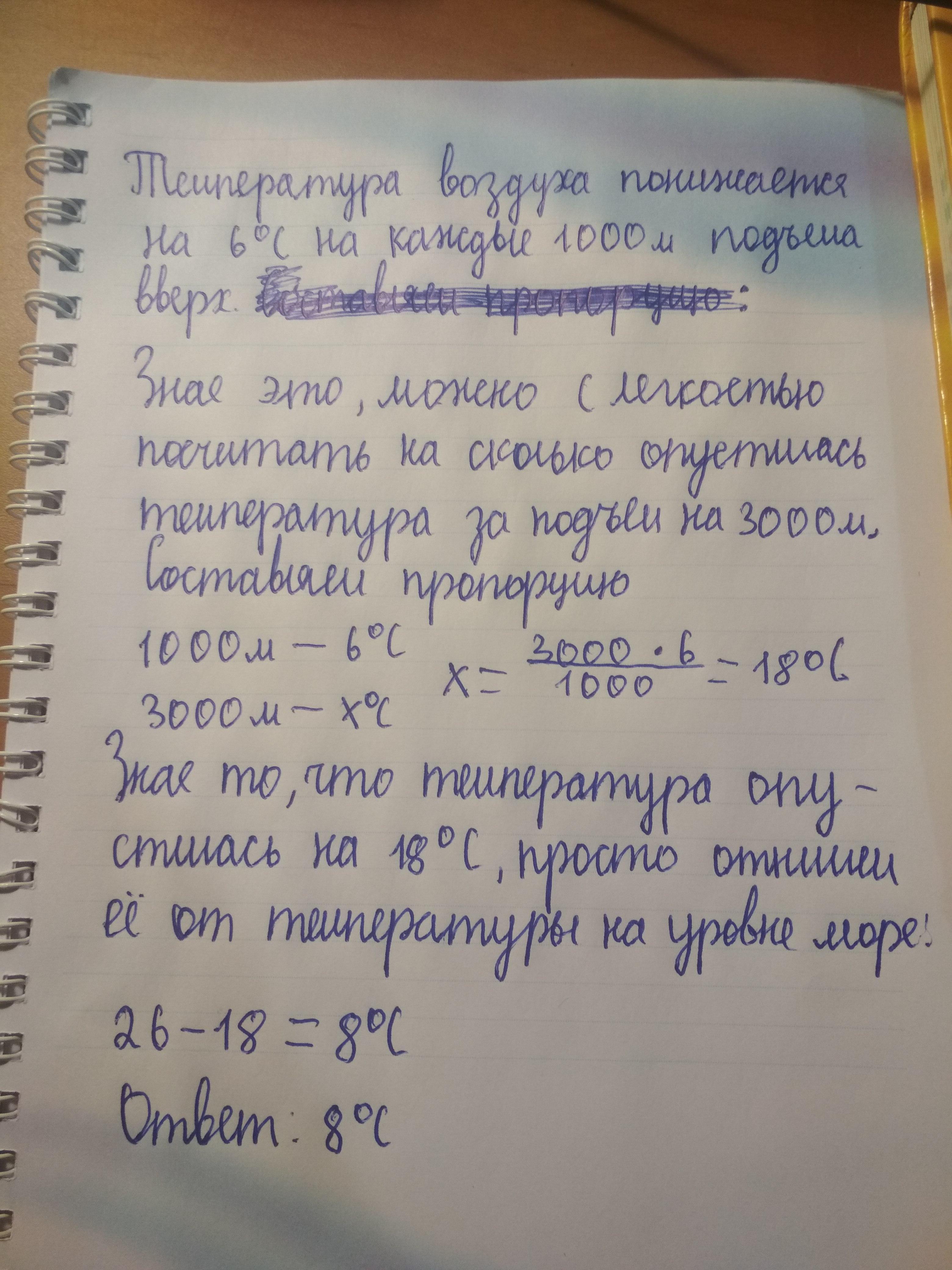 Определите температуру воздуха за бортом самолета который летит на высоте 3.000 м если температура на уровне моря плюс 26 градусов Цельсия