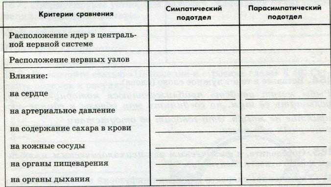 Критерии сравнения Симпатический отдел и Парасимпатический отдел​