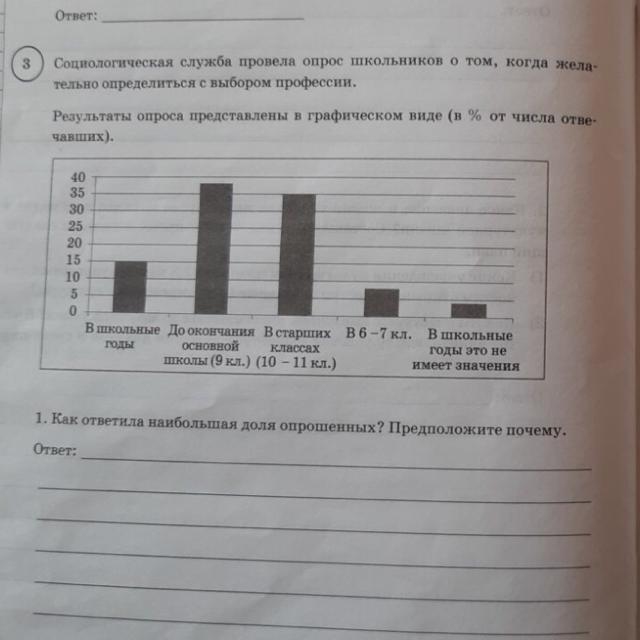 наибольшая доля опрошенных ответила, что нужно определиться с выбором профессии до окончания основной школы (9 кл).