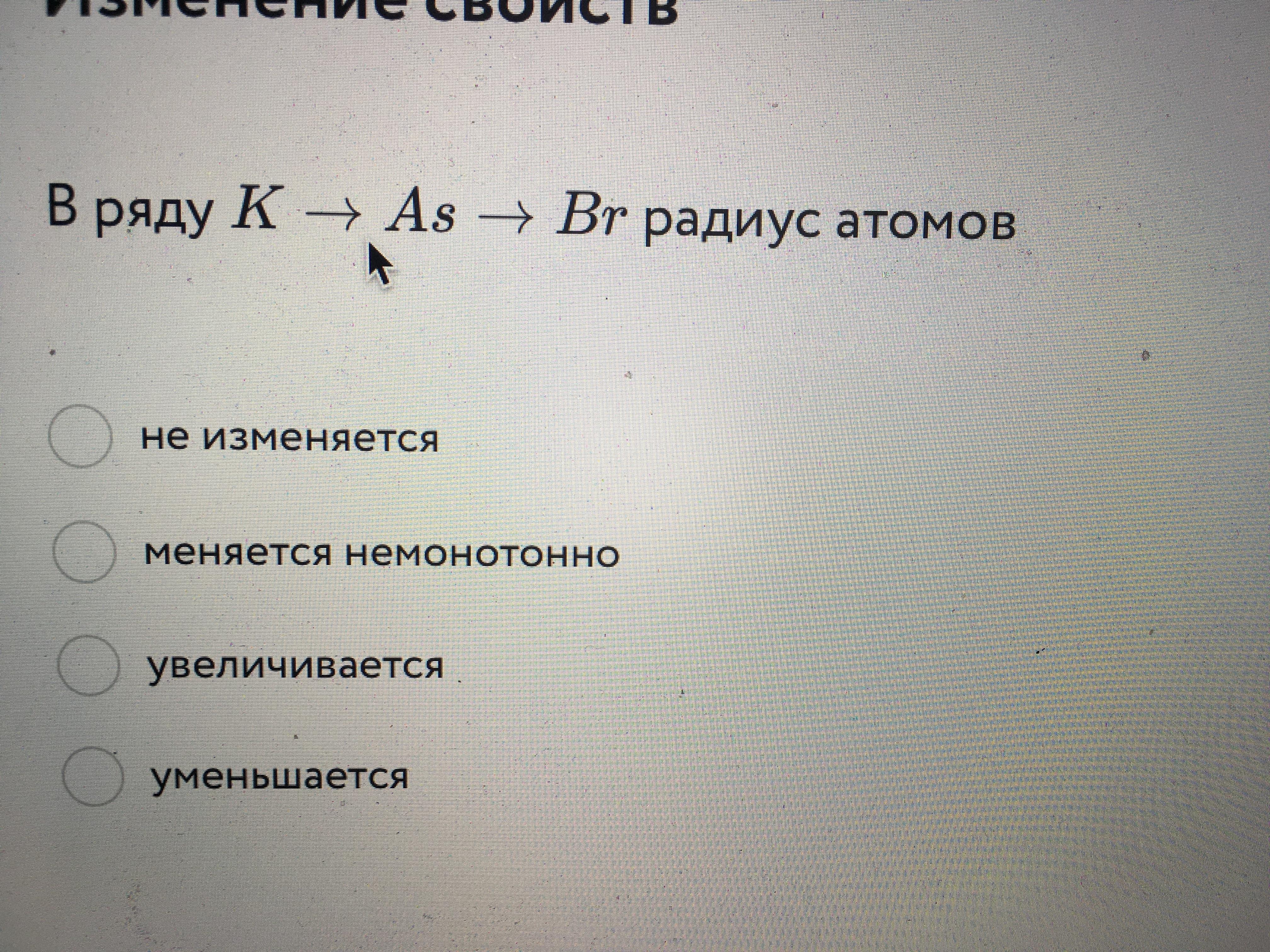 Радиус калия 235 пм, арсена 139 пм, брома 94 пм