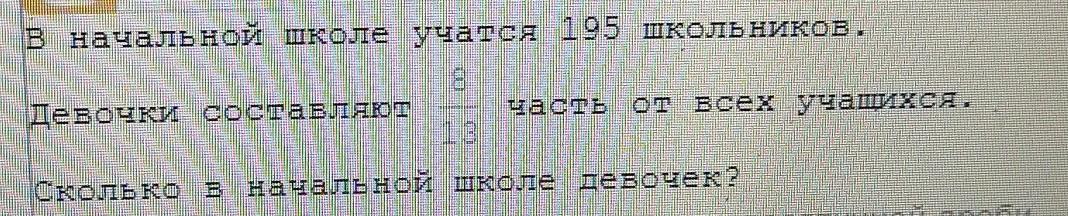 Если на фото 8/13 195 / 13 * 8 = 15 * 8 = 120 (девочек)