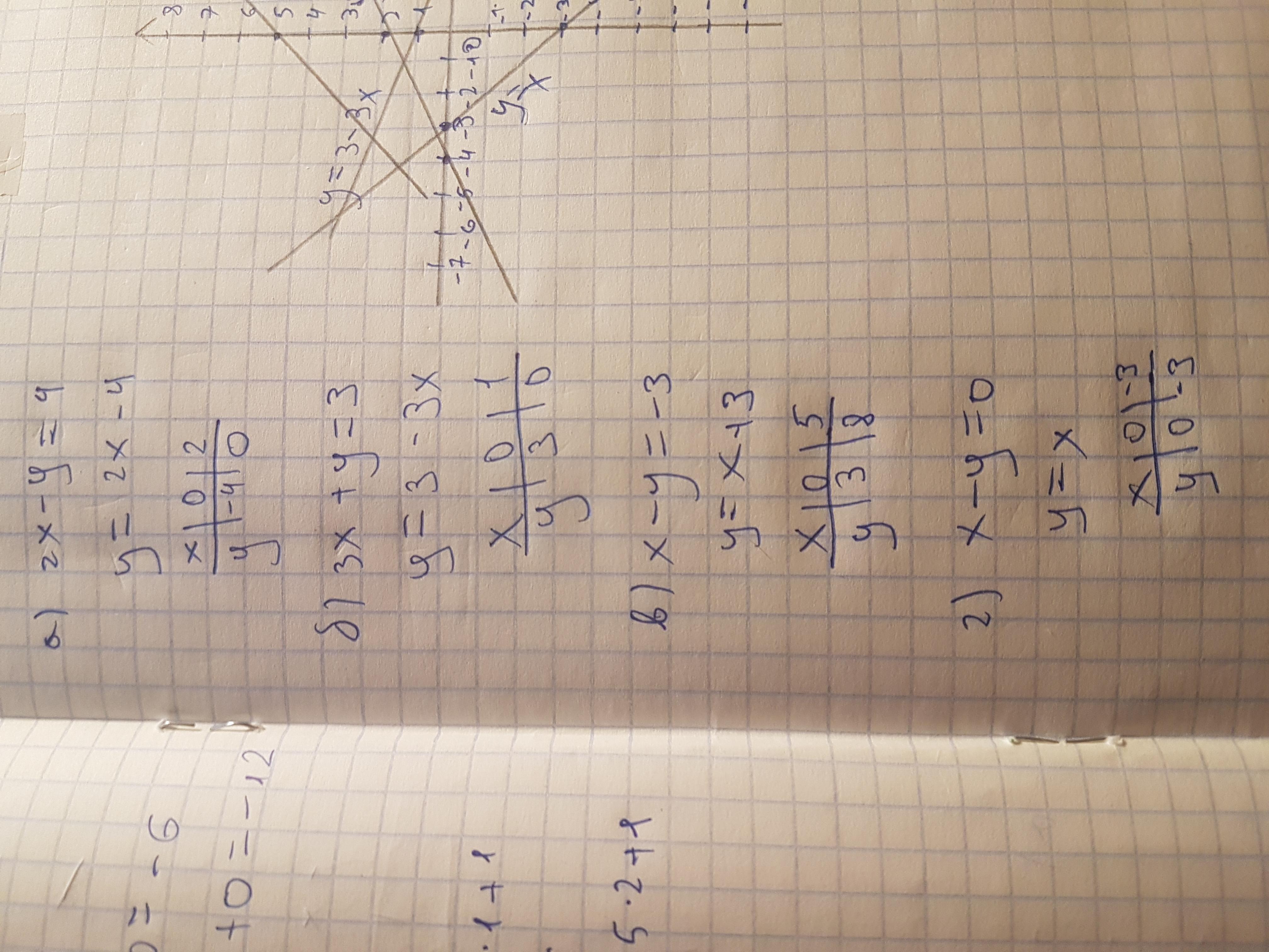 Таблицы составил правильно, а точки построил неверно и прямые неверно поэтому.