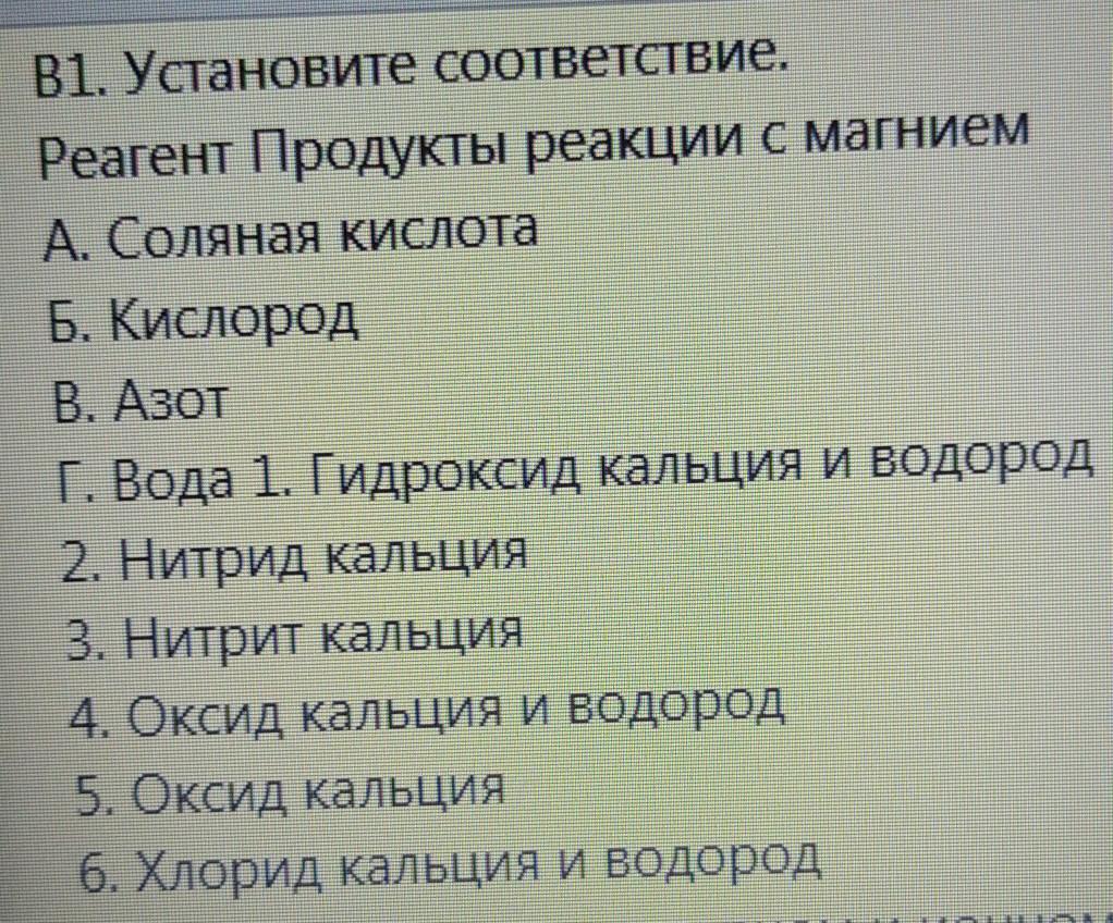 Ответ: А - 6 Б - 5 В - 2 Г - 1