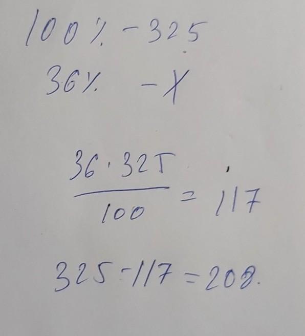В соревах учасвствовали 325 ученика,во время забега 36% учеников отстали. Сколько пришло к финишу?