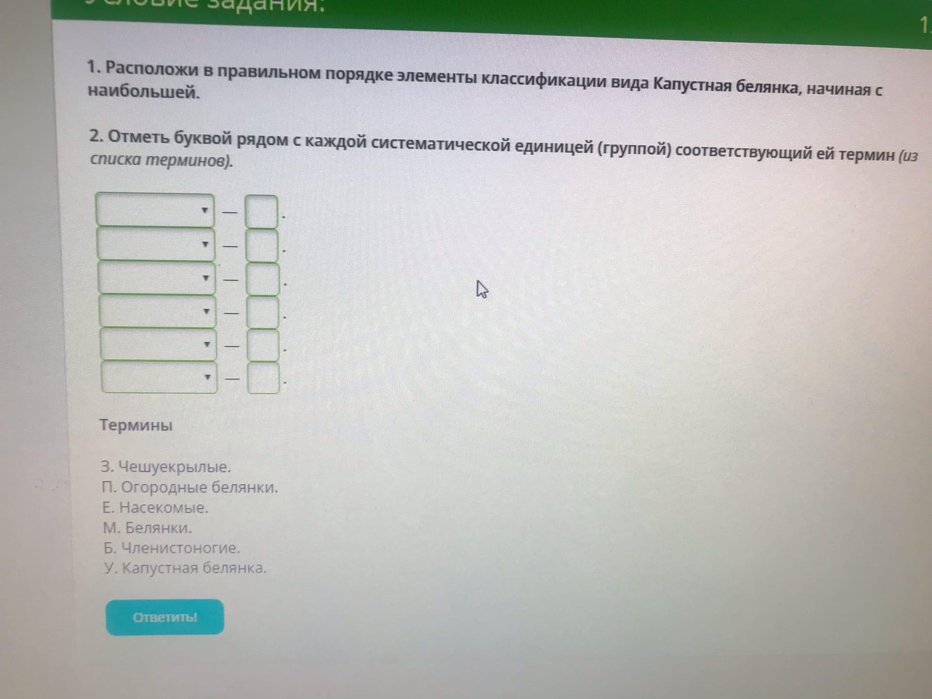 в левом столбике вид,род,отряд,тип,семейство,класс