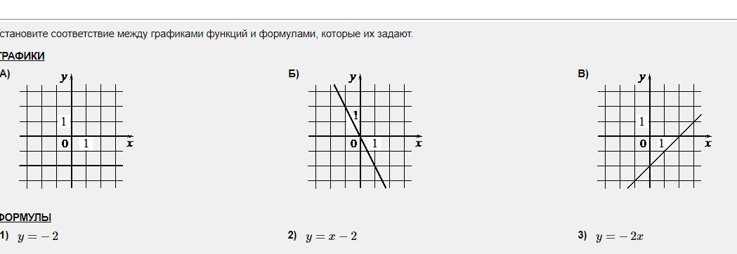 Установите соответствие между графиками функций и формулами, которые их задают.Ответ запишите ввиде числа без пробелов.