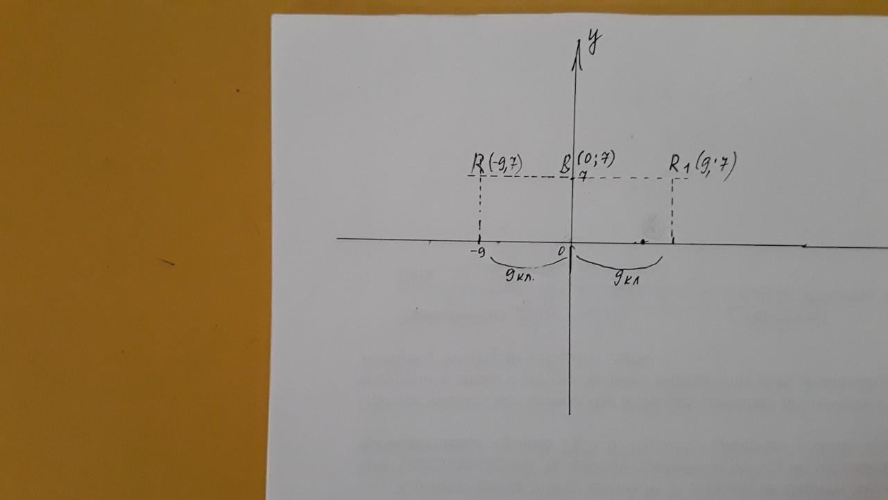 Точке R(−9; 7) будет симметрична точка R₁ (9 ;7) относительно точки В(0;7)