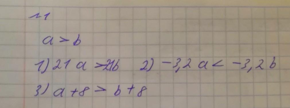 1. Известно, что а > b. Сравните: а) 21а и 21b; б) -3,2а и -3,2b; в) а + 8 и b + 8.