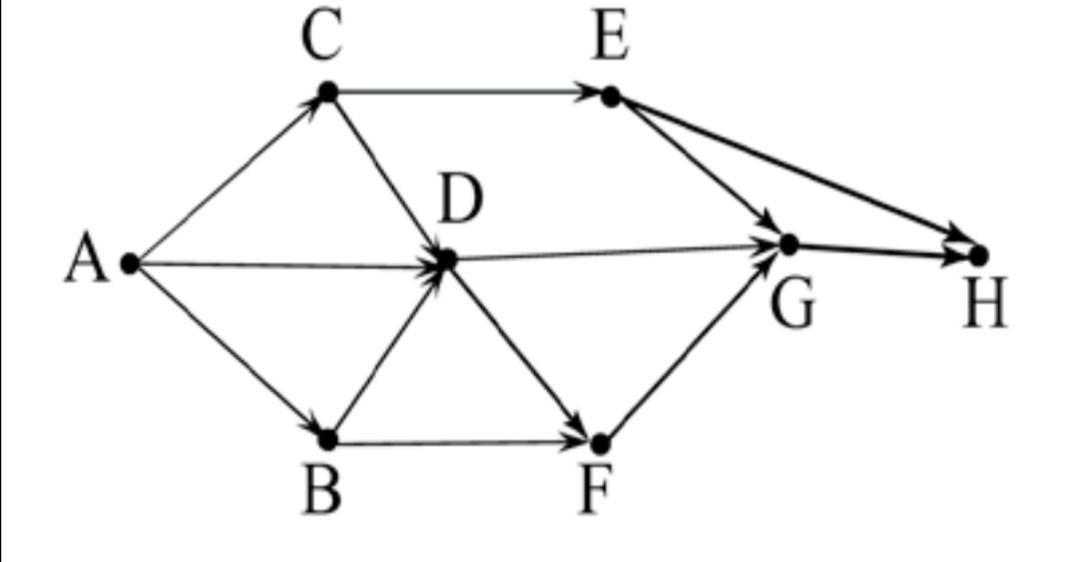 (№ 1280) На рисунке – схема дорог, связывающих города A, B, C, D, E, F, G и H. По каждой дороге можно двигаться только в одном направлении, указанном стрелкой. Сколько существует различных путей из города A в город H, проходящих через город D?
