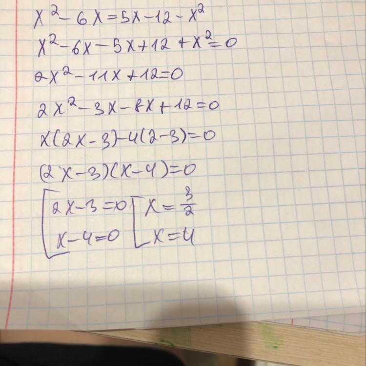 Помогитеее решить уравненияяя; x^2-6x=5x-12-x^2