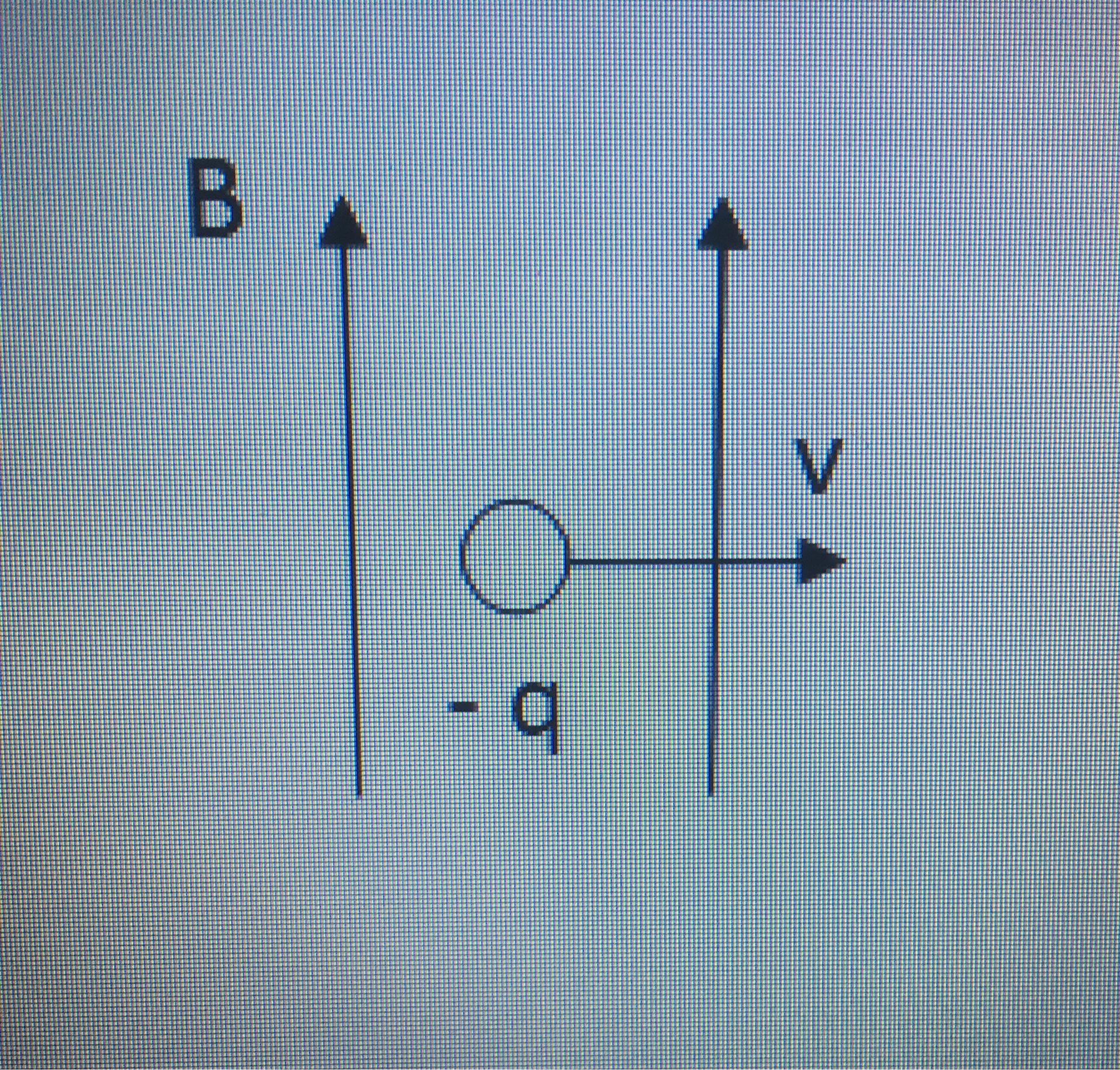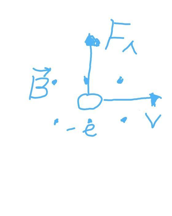 Определяем по правилу левой руки - в ладонь входят линии магнитной индукции, четыре пальца направлены по скорости(в данном случае заряд отрицательный, то значит направляем четыре пальца против скорости) и большой палец укажет Силу Лоренца, которая направлена от нас.