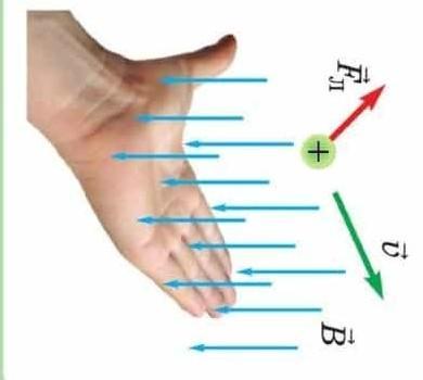 Сила будет направлена перпендикулярно от нас. Если же смотреть сверху, то будет выглядеть как я нарисовал.