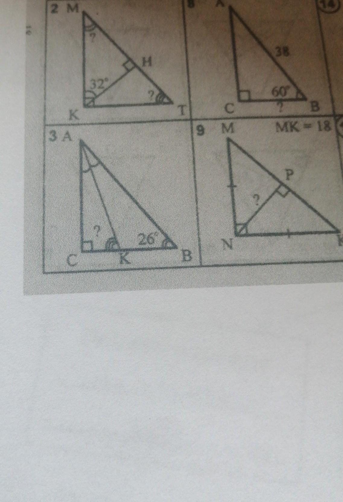 По теореме о сумме острых углов прямоугольн. треугольника : 90°-32°=58°-угол КМН.