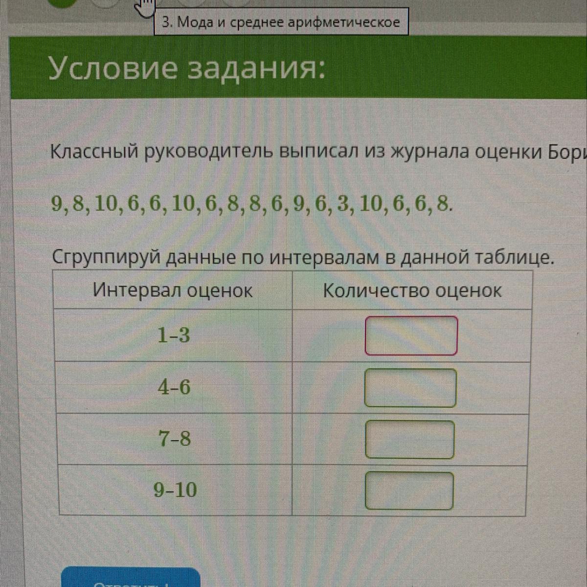 Классный руководитель выписал из журнала оценки Бори: