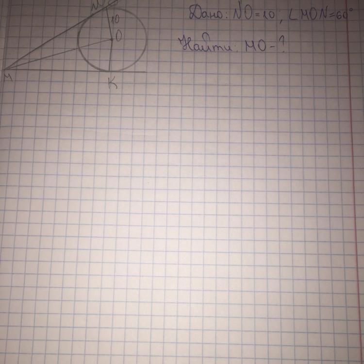Катет лежащий напротив угла в 30° равен половине гипотенузы. МО=10×2=20