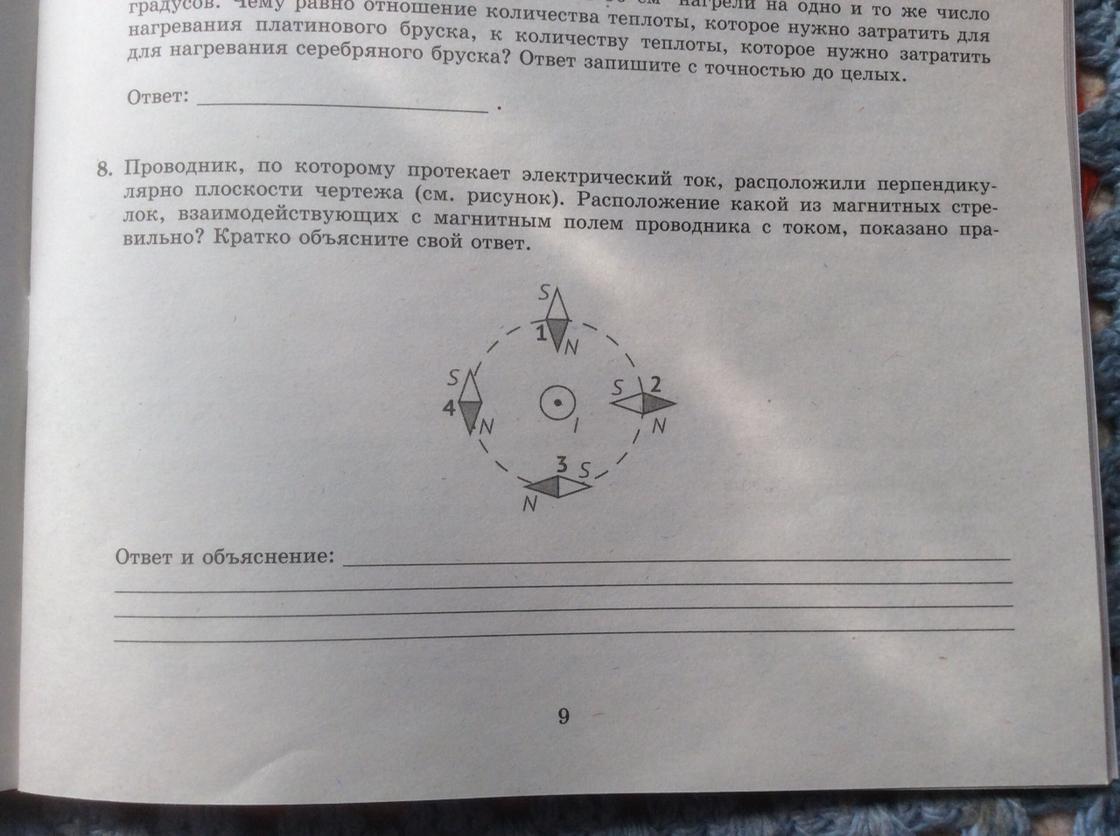 Проводник, по которому протекает электрический ток, расположили перпендикулярно плоскости чертежа. Пожалуйста, помогите решить