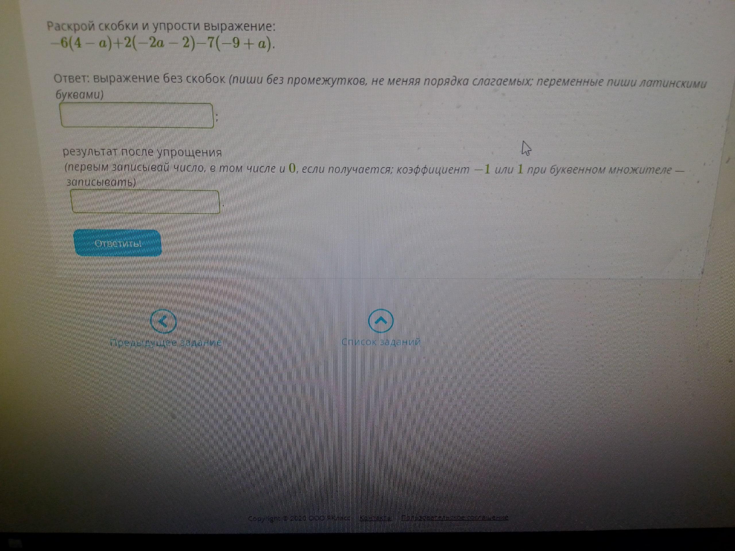 Ответ: Раскрытие: -24+6а-4а-4+63-7а