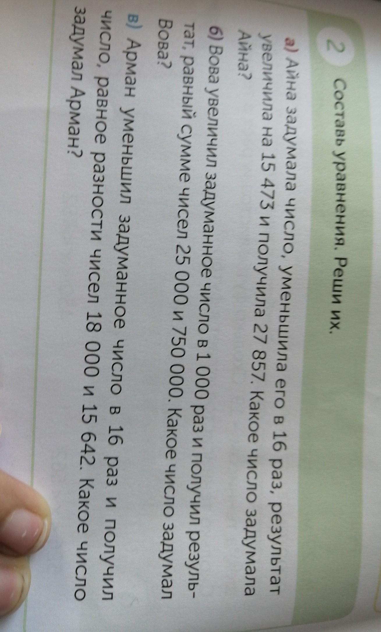 Айна задумал число уменьшили его в 16 раз результат увеличила на 15 1943 и получила 27857 какое число задумала Айна