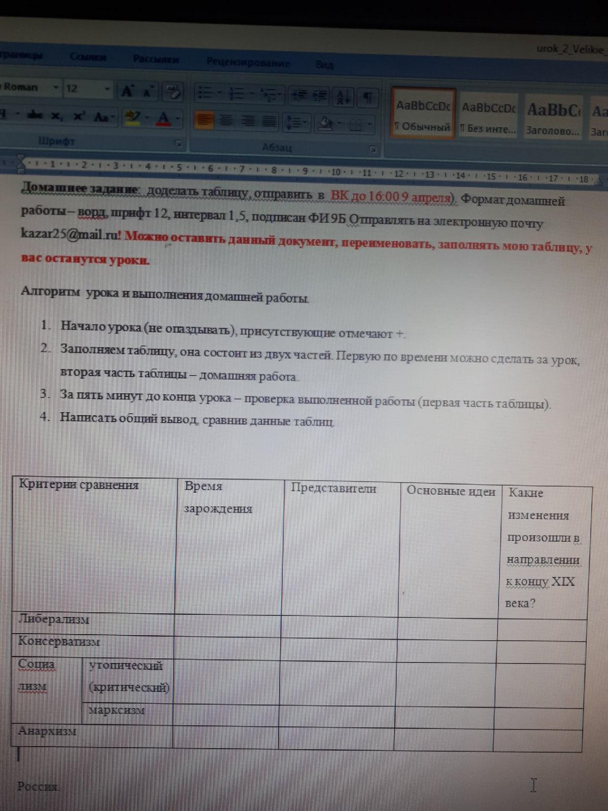 Таблица по истории. Основные направления общественно – политической мысли XIX века