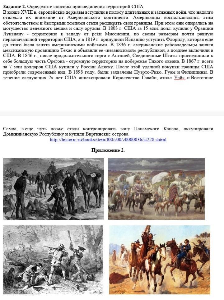 Задание 2. Определите способы присоединения территорий США. Приложение 2