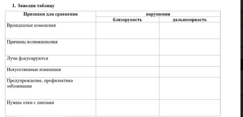 помогите составить таблицу по биологии