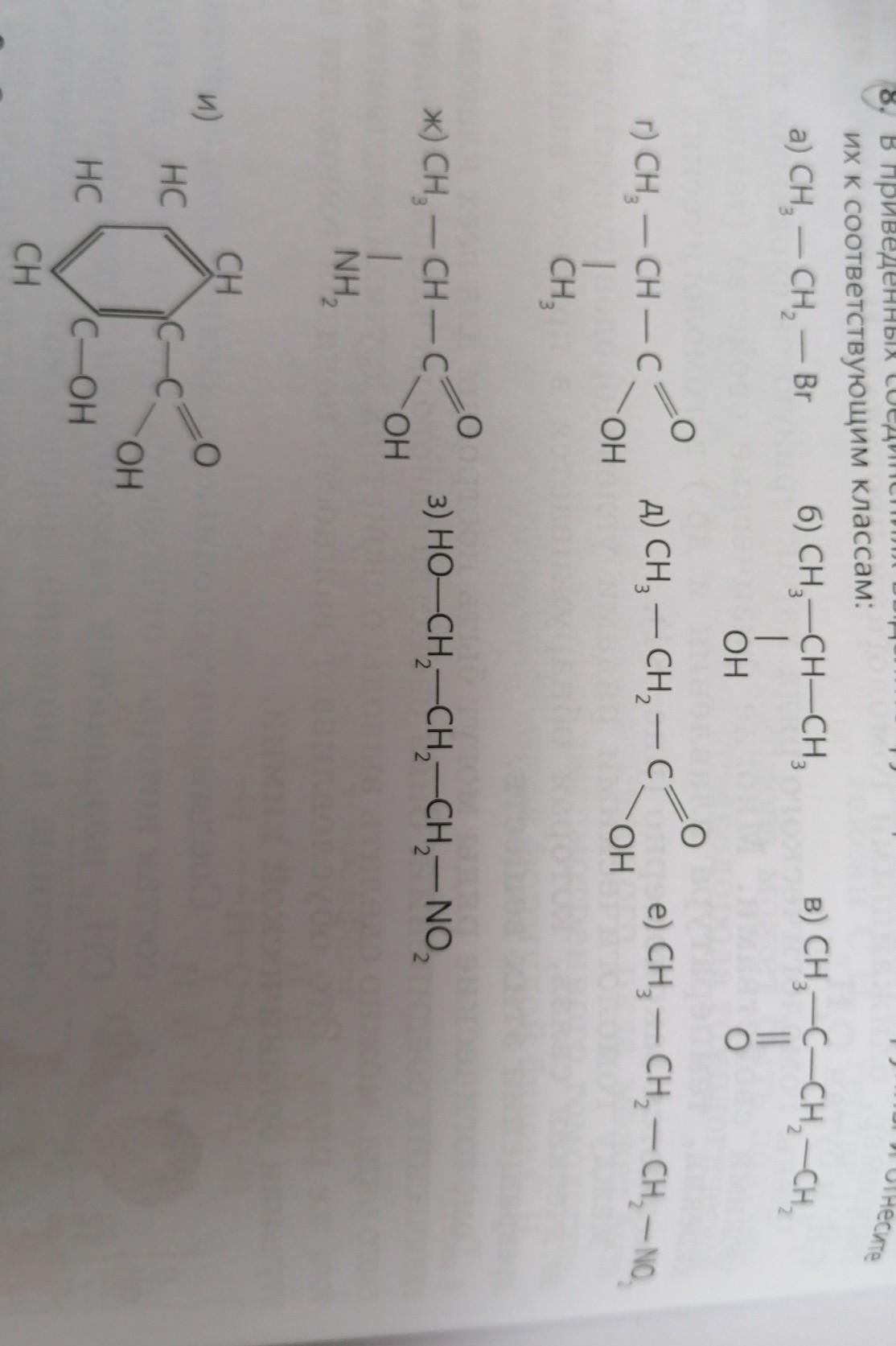 Помогите. Химия. Сложно. Даю 20 баллов, в приведённых соединениях Выделите функциональные группы и отнесите их к соответствующим классам