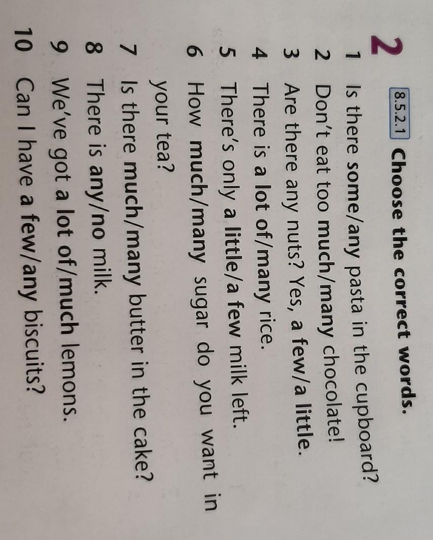 1)some 2)much 3)a few 4)a lot of 5)a little 6)much 7)much 8)no 9)a lot of 10)any