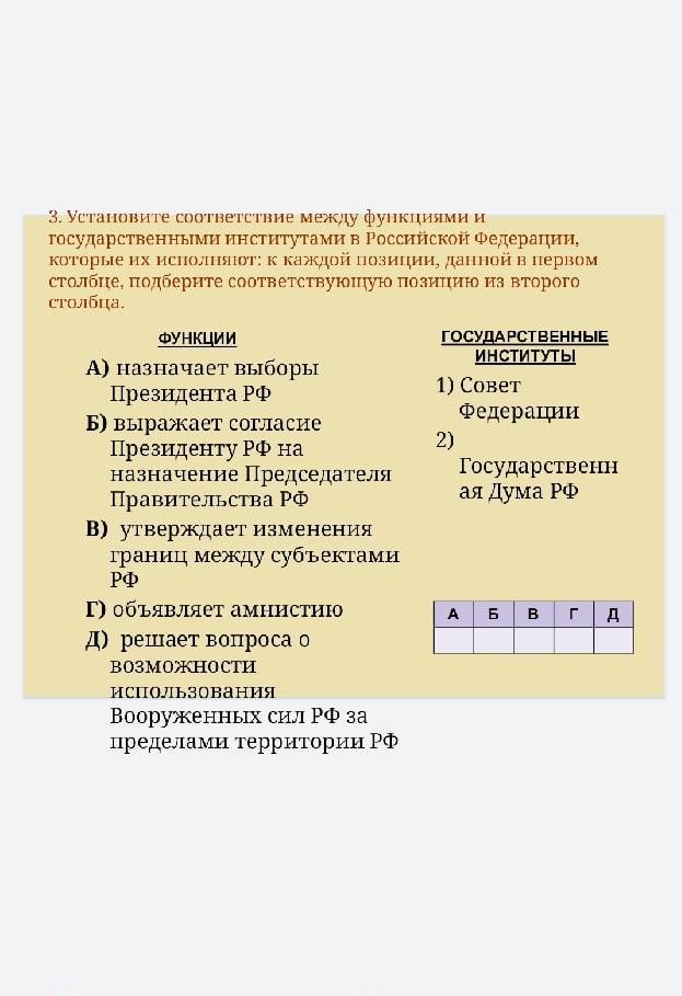 Соответствие между функциями и государственным институтами​