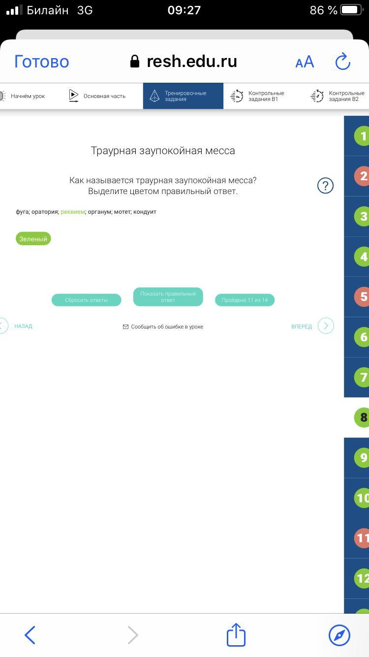 1.Подставьте к изображениям верные названия духовых музыкальных инструментов. Флейта орган свирель тромбон 2. Литургическое пение Как называется традиционное литургическое пение римско-католической церкви? Выберите правильный ответ. А.Григорианский хорал Б.Органум В.Реквием Г.Мотет Д.Оратория. 3. Застывшая музыка Что называют застывшей музыкой? Выберите правильный ответ. А. иконы в храмах Б.паузы в музыкальных произведениях В.В. архитектуру религиозных сооружений 4. Духовная музыка Соедините линиями типы религиозных храмов с характеристиками духовной музыки, звучащей в них. умиротворенное, распевное пение а капелла динамичная, драматическая музыка, словно устремлённая ввысь 5 Музыкальные жанры В каких музыкальных жанрах работал Иоганн Себастьян Бах? Выберите правильные ответы. балет хорал опера реквием фуга месса 6. Богослужебное пение Что буквально означает cantus planus, богослужебное пение западных католиков? Подчеркните правильный ответ. медленное пение; плавный распев; священное пение 7. Направление в живописи, литературе и музыке Переставьте буквы так, чтобы получилось название музыкального направления, аналогичное подобному направлению в живописи и литературе. М ПР ИМ ОН И ЕС СИ 8. Траурная заупокойная месса Как называется траурная заупокойная месса? Подчеркните правильный ответ. фуга; оратория; реквием; органум; мотет; кондуит