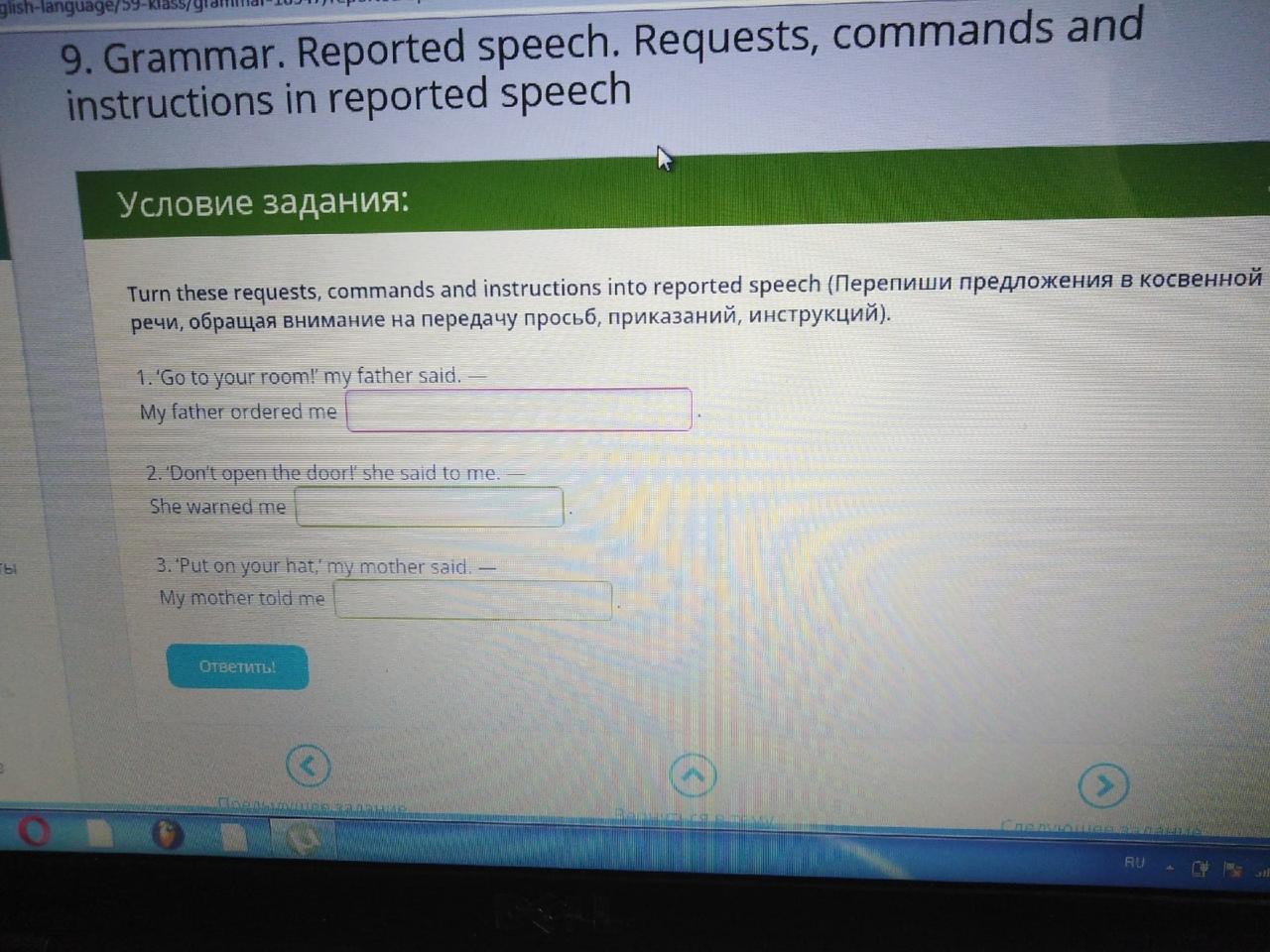 9. Grammar. Reported speech. Requests, commands and instructions in reported speech.