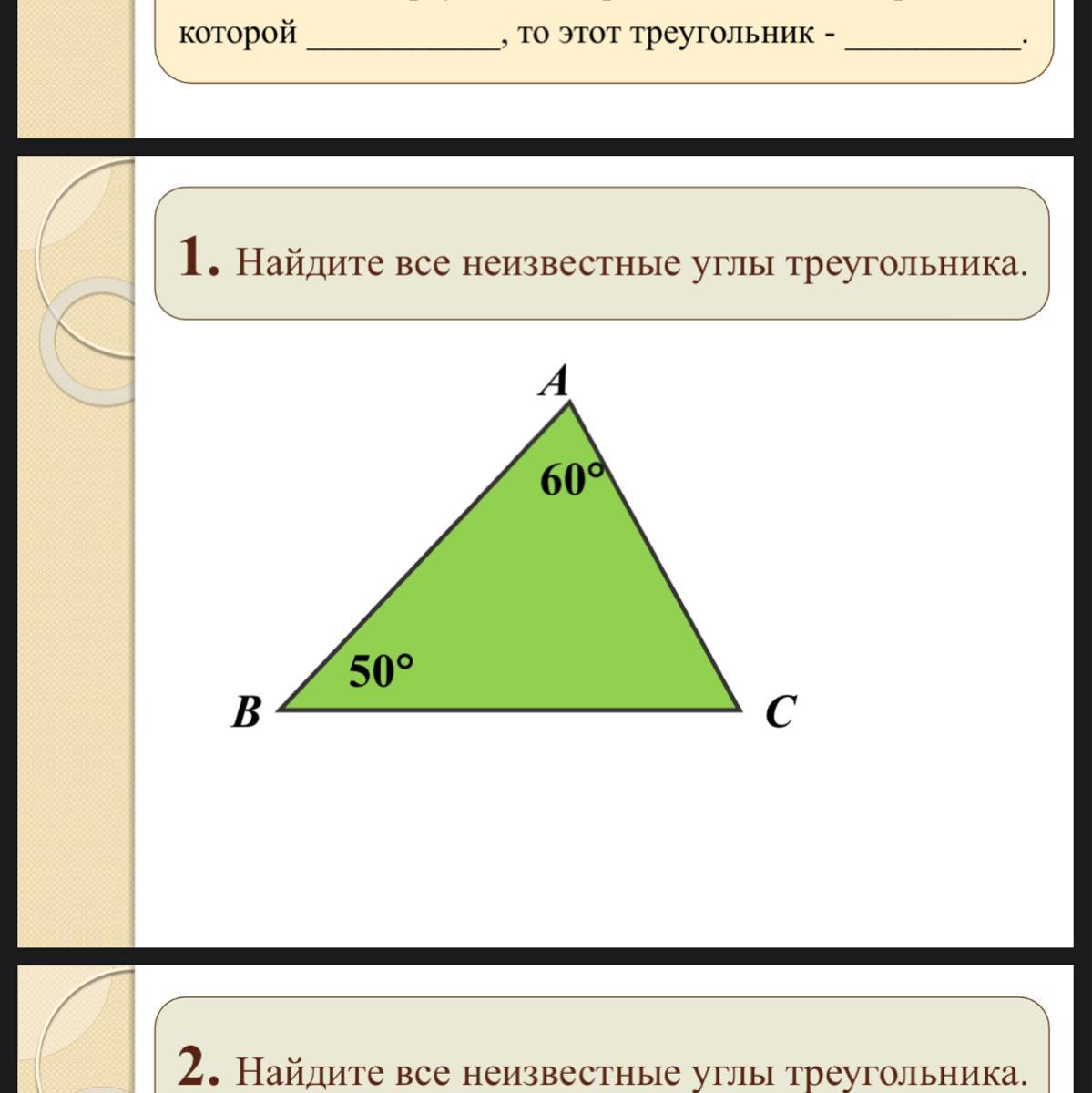 Угол С = 180 (сумма углов треугольника) - 50 - 60 = 70 гр.