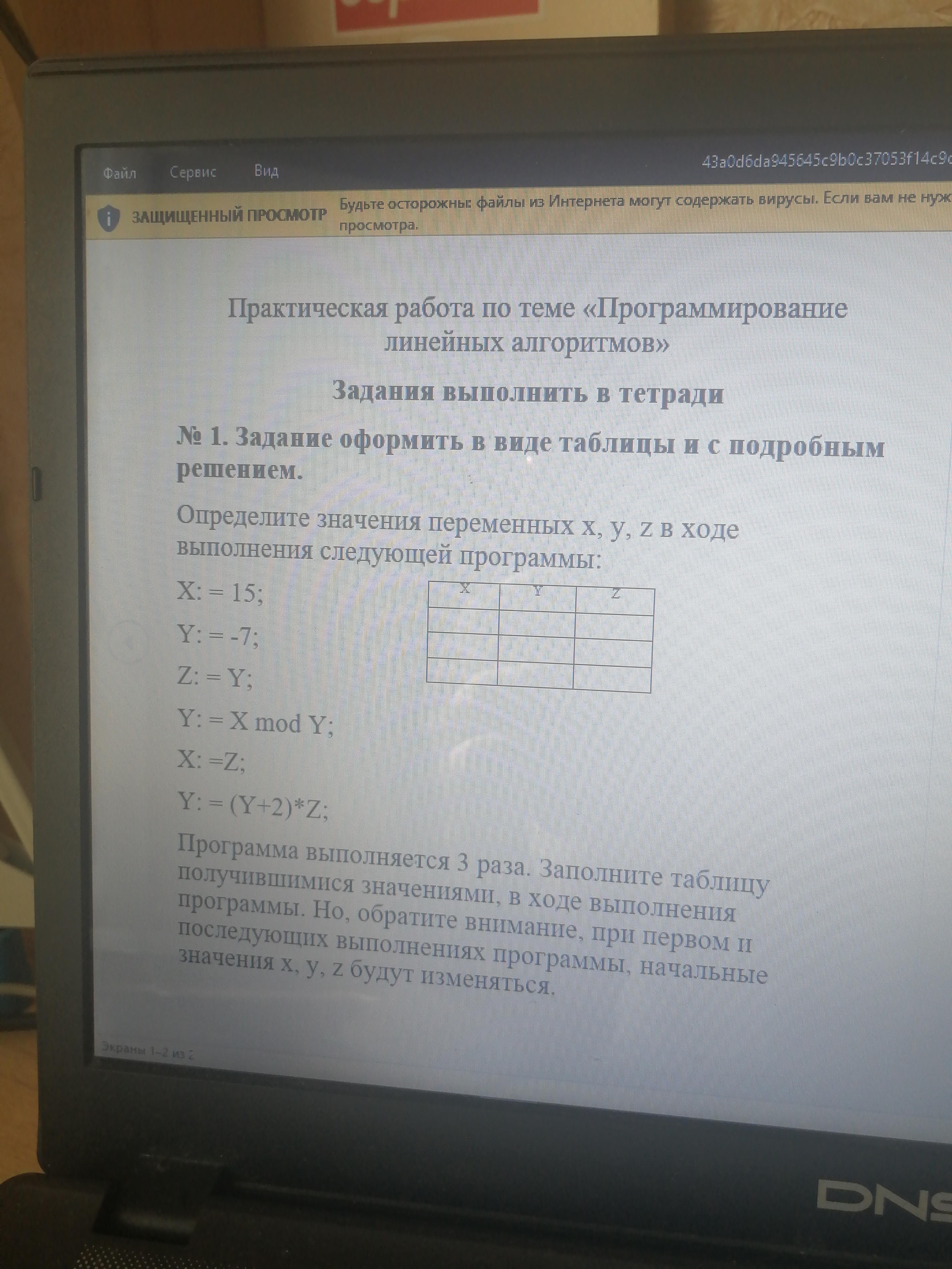 срочно!Определите значения переменных x, y, z в ходе выполнения следующей программы