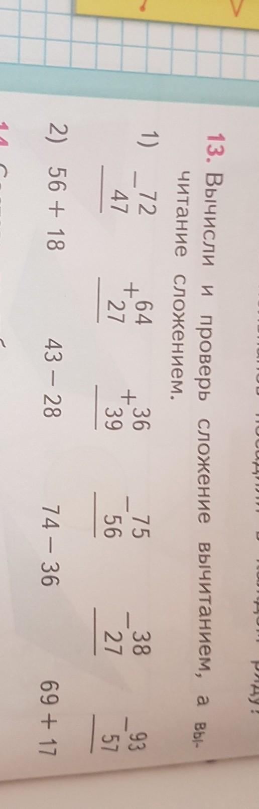 2)64+27=91 91-27= 64 3)36+39=75. 75-39=36. 4) 75-56=19 56+19=75. 5)38-27=11. 27+11=38 6)93-57=36 57+36=93. 2)56+18=74. 74-18=56. 43-28=15. 28+15=43. 74-36=38. 36+38=74 69+17=86 86-17=69