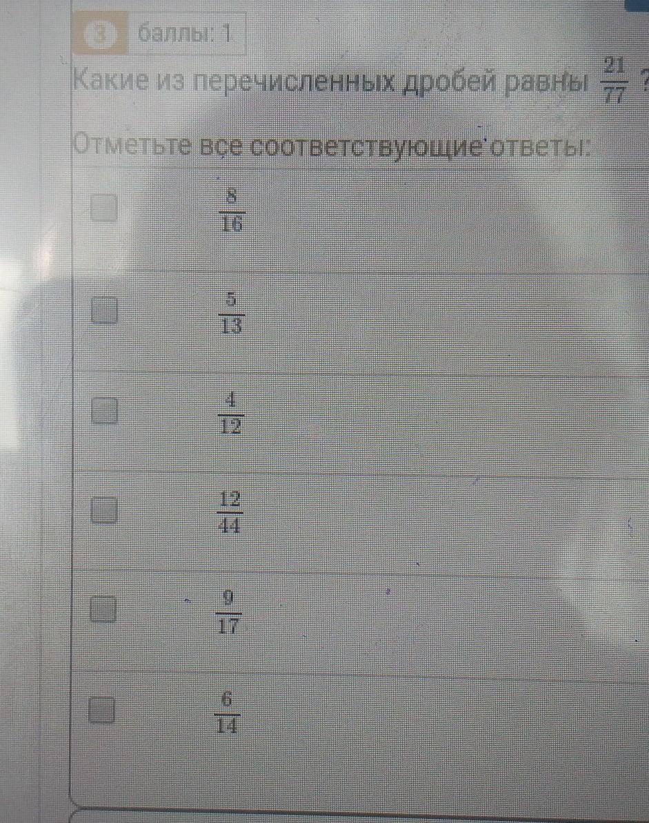 Смотри. Почти все дроби можно сокращать. Тоесть ты смотришь, делятся ли оба числа дроби на одно и тоже число. 77 и 21 делятся на 7. Получается дробь . Дальше смотришь, можно ли найти такие дроби, которые кратны этой. Но я тут таких не вижу...
