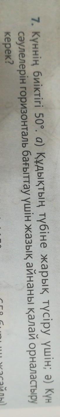 Күннің биіктігі 50°. а) Құдықтың түбіне жарық түсіру үшін; ә) Күн