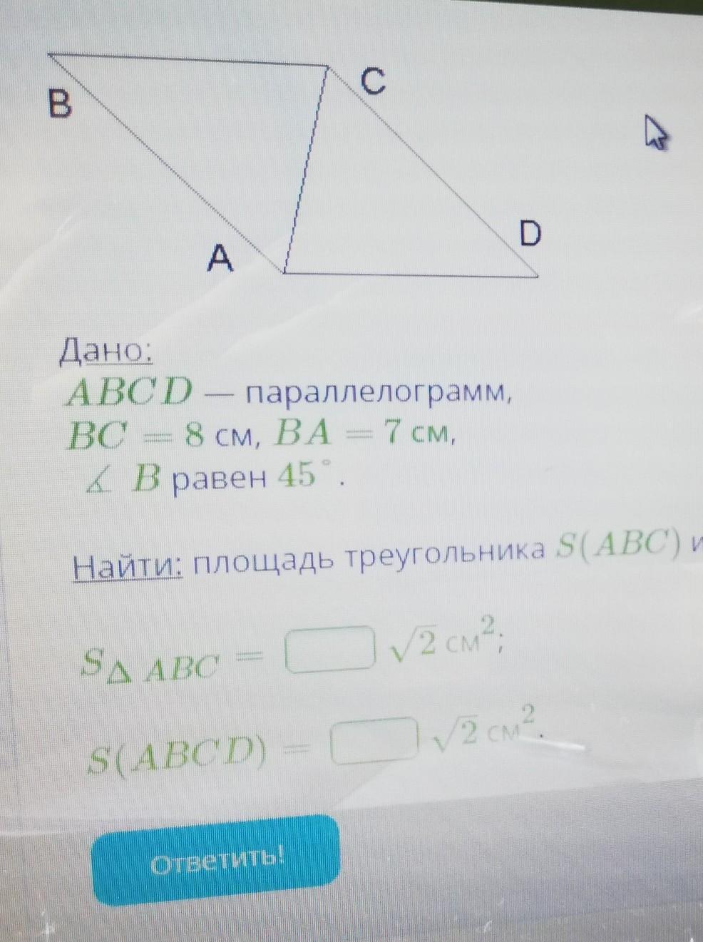 Найти площадь треугольника АВС и площадь параллелограмма АВСД​