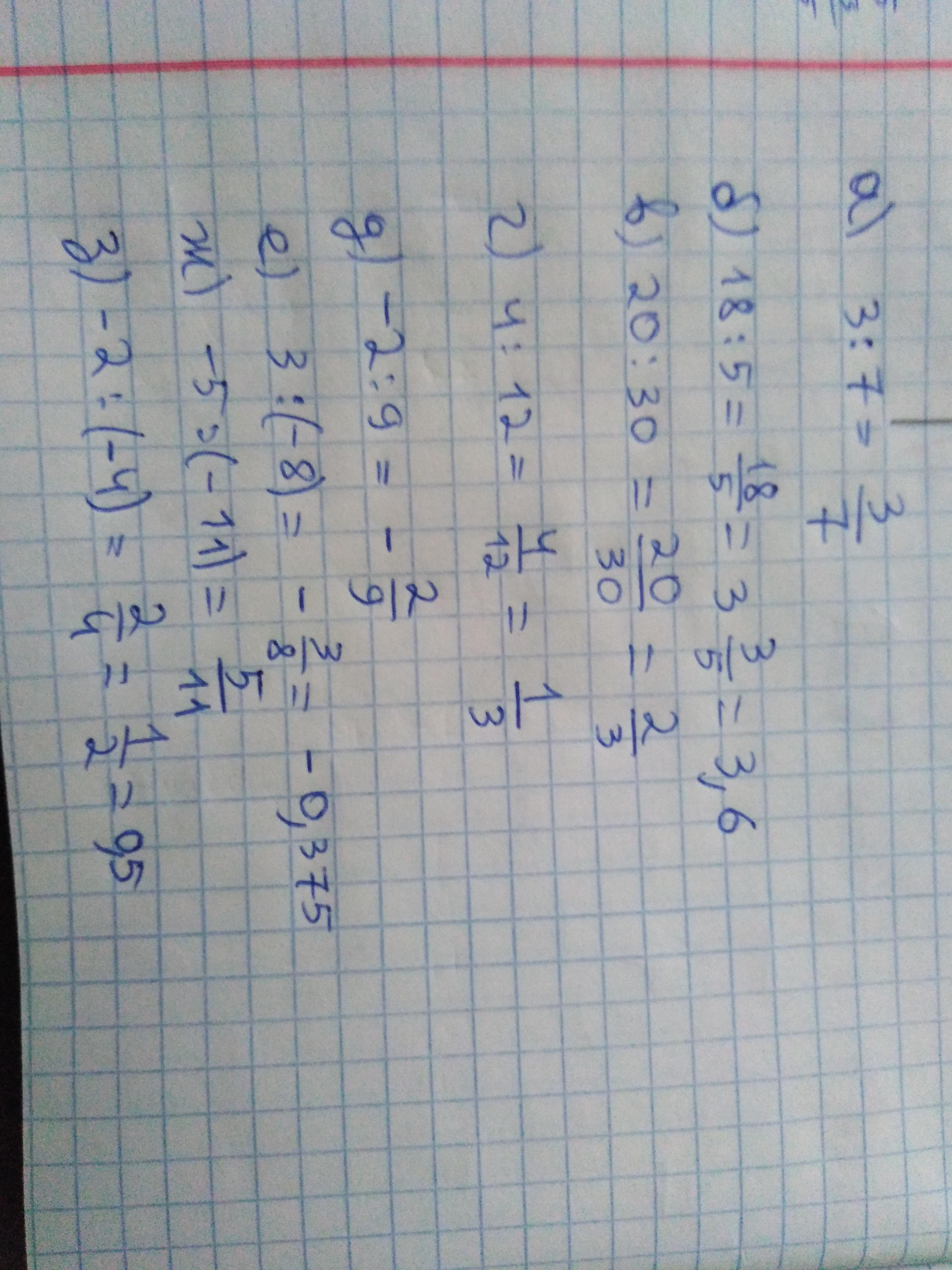 г) 4 : 12 д) –2 : 9