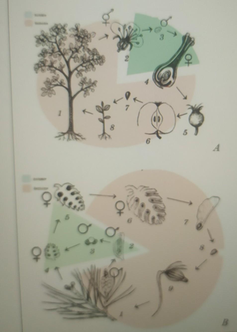 1. Определите жизненный цикл Голосеменных и покрытосеменных растений