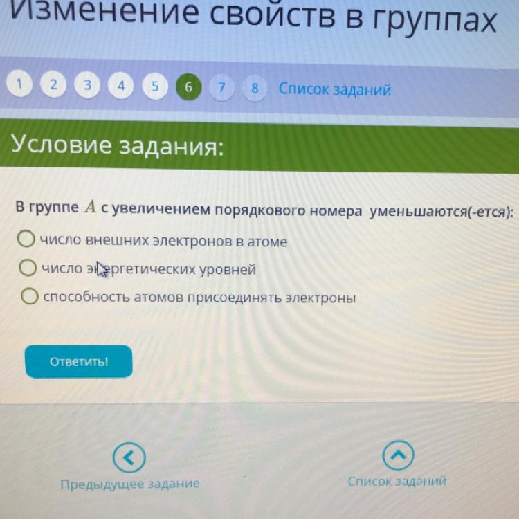 В группе А с увеличением порядкового номера уменьшаются(-ется):