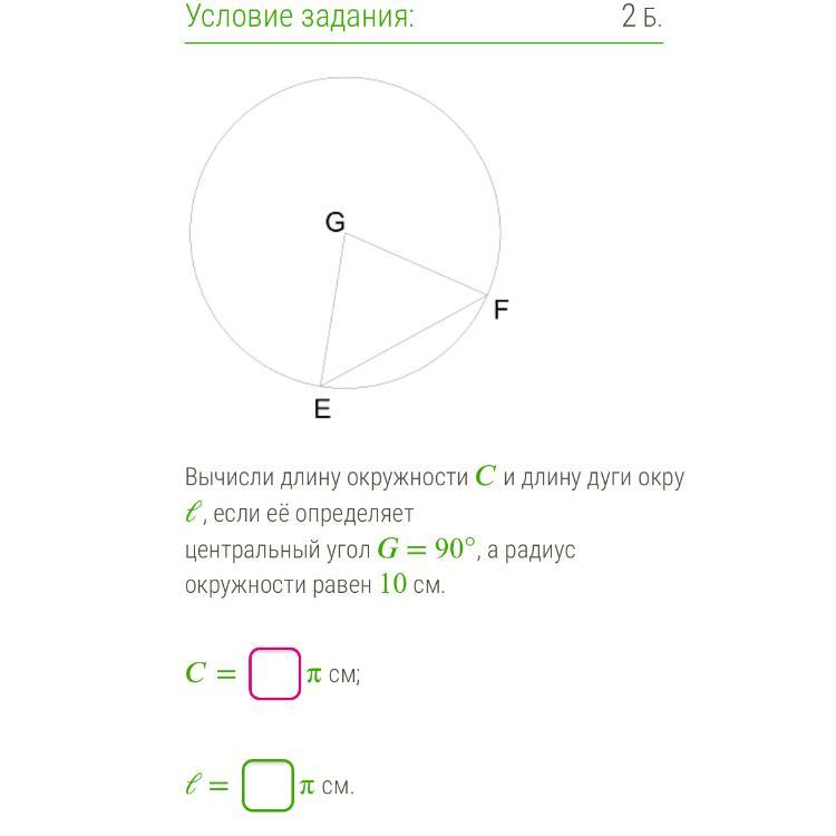 Найди длину дуги окружности радиуса 10 см, если её градусная мера равна 225°.