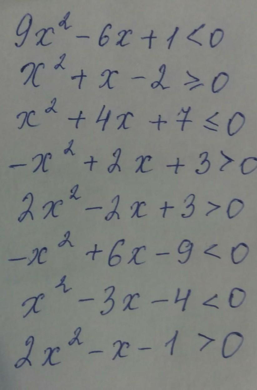 помогите алгоритм решения квадратных неравенств с помощью графика функции и решить следующие неравенства