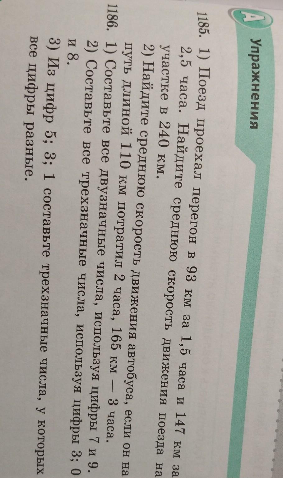 №1185 1) 60 км/ч; 2) 55 км/ч.